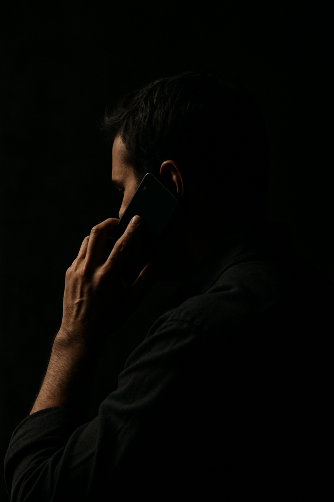 Caption: A Man Is Displayed With His Face Unseen, Demonstrating the Nefarious Intent of the People Behind The Scams. Taken by Justin Holgate, September 2, 2025