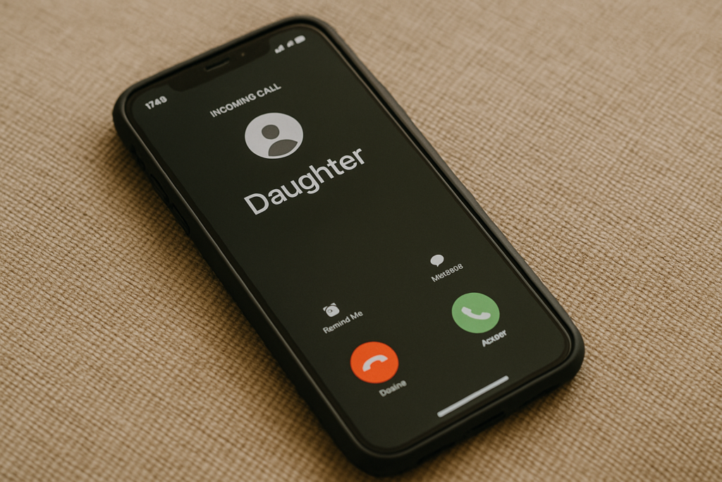 Caption: A Phone Rings With Your Daughter’s Name, demonstrating the scary dissonance between reality and deception. Taken by Justin Holgate, September 1, 2025.