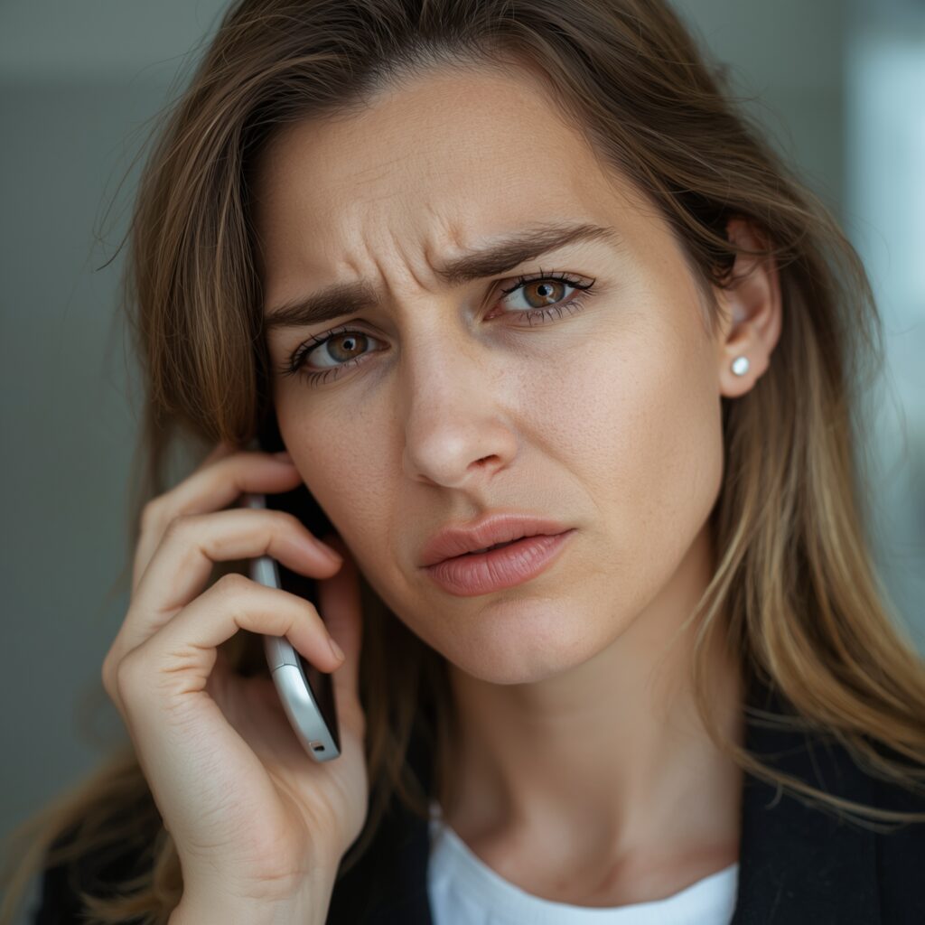 Caption: A Woman Picks Up A Call, Seemingly Concerned, Showing The Ease Of Manipulating People Using Voice AI. Taken by Justin Holgate, September 2, 2025